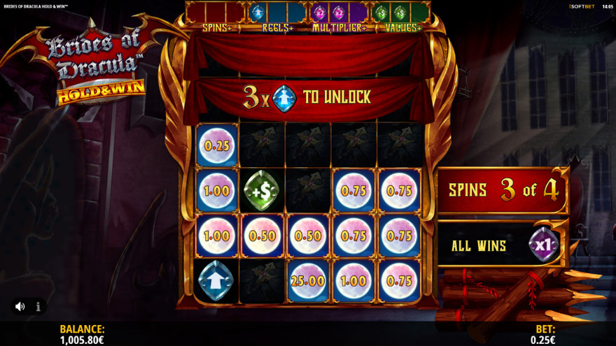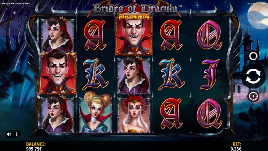 Noivas de Drácula Hold & Win é um slot de vídeo do Isoftbet que tem 5 bobinas, 3 linhas e 25 linhas de pagamento. Você pode escolher entre fazer um Min.bet de 0,25 e a Max.Bet of 25. O RTP do jogo é ligeiramente menor que a média, pois é um RTP de 95,50%. Você cria uma vitória em média a cada quarto giro que é feito, pois é um Frequência de acertar de 23,8%. É um média/alta volatilidade, onde você pode Ganhe até 6040x a aposta.
