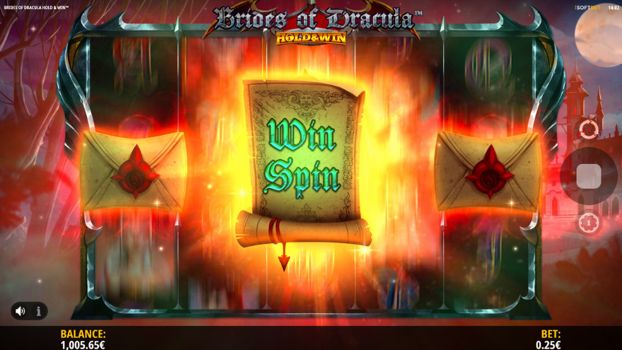 Se você aterrissar 5 ou mais símbolos de dispersão, as noivas do recurso Drácula respins serão ativadas. Os símbolos de dispersão que você teve durante a ativação permanecerão nas bobinas, onde os outros símbolos serão removidos. Você recebe 3 respins e cada vez que pousa um símbolo de dispersão, ele permanece em sua posição e, em seguida, você reinicia os resfotos para 3 novamente.