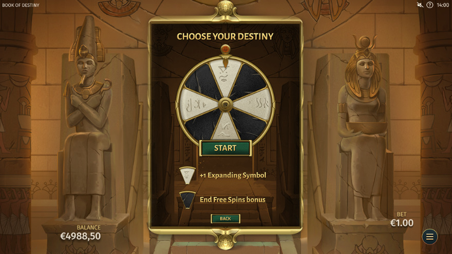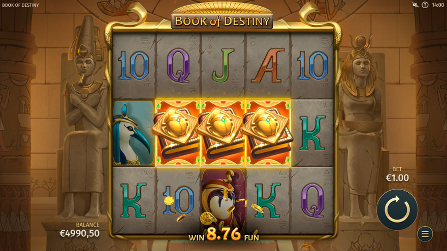 Book of Destiny é um slot de vídeo de Estudos de impressão e Relaxe os jogos isso tem 5 bobinas, 3 linhas e 10 linhas de pagamento. Você pode escolher entre fazer um Min.bet de 0,10 e a Max.Bet of 100. Os jogos Rtp é maior que a média, pois possui um RTP de 96,50% E se você usar o recurso de compra de bônus, o RTP aumenta para 96,72%. Livro de Destino tem um Frequência de acertar de 31,77%, o que torna os giros muito agitados em combinação com os recursos que o acompanham. É um média/alta volatilidade, onde o jogador sortudo pode Ganhe até 10823x a aposta.