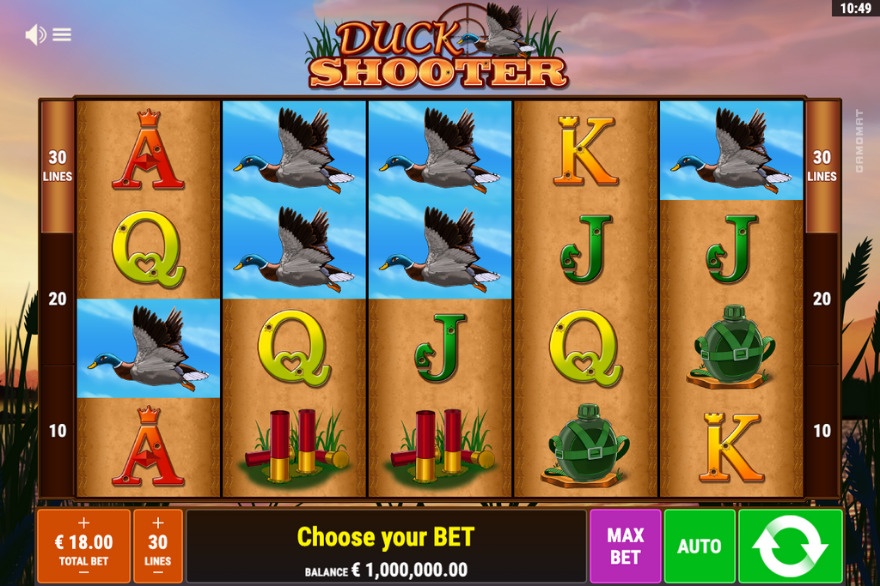Atirador de pato é um slot clássico de cassino de Gamomat Isso foi lançado em 2018. Um slot que nos deixa participar de alguns bons giros no jogo base, onde você espera o grande rebanho de pássaros que voam durante o recurso de giros gratuitos. Com o atirador qualificado também sendo o símbolo selvagem do jogo, vitórias maiores podem ser retiradas rapidamente. Ao longo dos anos, participamos de mais slots com recursos semelhantes, onde dentro do Big Bass Bonanza, entre outros, seguimos um pescador que pode receber grandes capturas ao longo dos giros. Na maioria dos casos, escrevemos sobre novos slots, mas de vez em quando é ótimo voltar a alguns clássicos e dividir suas estatísticas e recursos. Vamos mergulhar neste slot e descobrir o que você pode esperar de ver durante as rodadas.