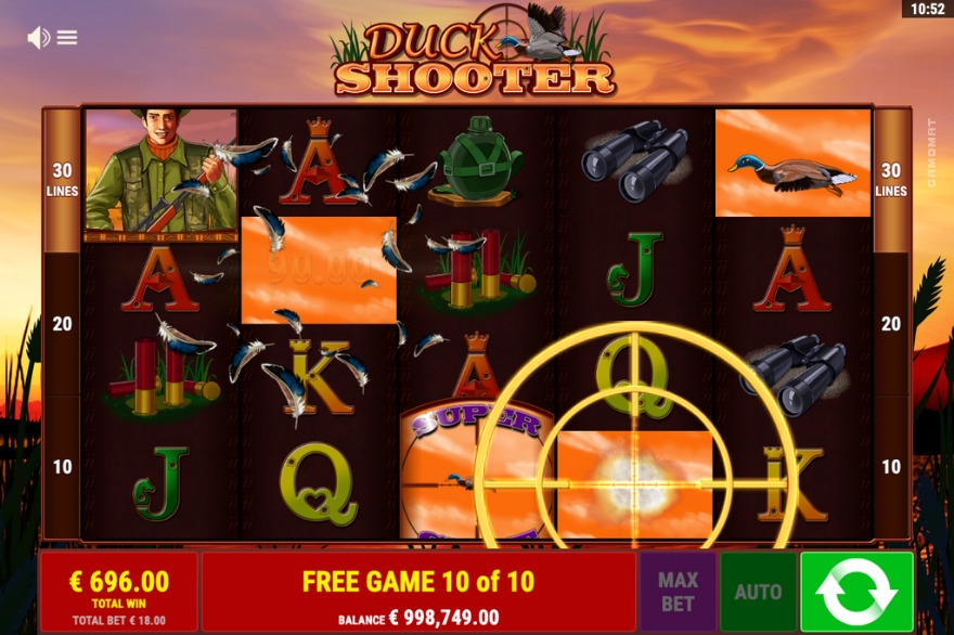 Shooter de pato é um slot de vídeo de Gamomat isso apresenta 5 bobinas e 4 linhas. Durante os giros, você pode optar por ativar 10, 20 ou 30 linhas de pagamento, resultando em tamanhos variados do tamanho da aposta. Pode -se escolher entre fazer um Min.bet de 0,10 e a Max.Bet of 18. O RTP está em torno da média, onde neste slot temos um RTP de 96,09%. Atirador de pato tem um Volatilidade média, onde o jogador sortudo pode Ganhe até 2500x a aposta.