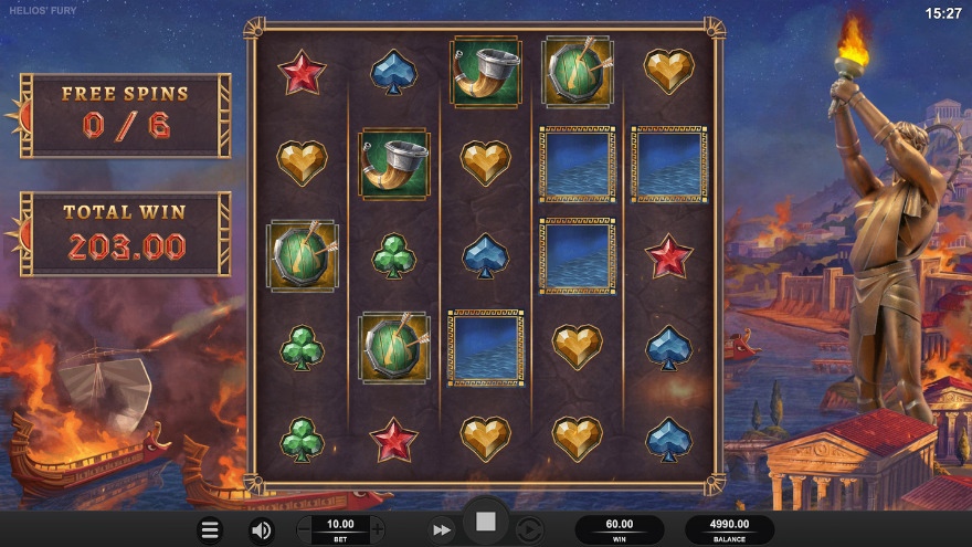 Fúria de Helios é um novo slot de cassino de Relaxe os jogos onde viajamos para a ilha de Rhodes, que está sob ataque. Um ataque inicialmente bem -sucedido que acaba sendo exatamente o oposto onde eles acordam Helios. Helios é descendente da mitologia grega, onde ele era uma personificação do sol e um Deus do Sol é poderoso para quem deve preferencialmente evitar arruinar o sono da tarde. Mas o feito está feito e agora temos a chance de testemunhar a fúria poderosa que esse Deus produz. Um nome que formou a base para a nomeação do elemento hélio, que é um dos constituintes mais importantes do sol. Vamos mergulhar neste slot e descobrir o que você pode esperar de ver durante as rodadas.